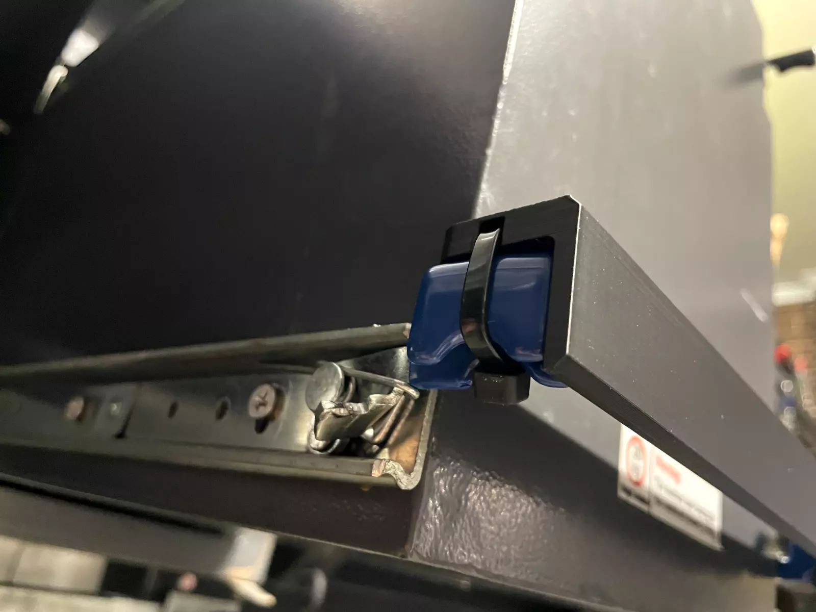 This is a 3D printed handle that attaches to the latches of the pantry slide with two 4.8mm zip ties on an Air Opus Camper Trailer.